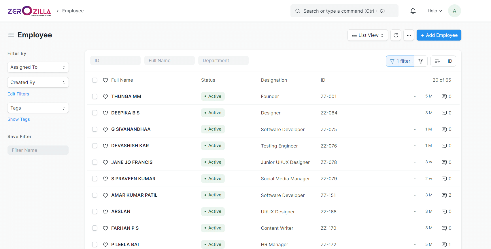 - Employee Records Management (ERP): Maintains and stores detailed employee information, including salary, code, address, designation, and more.