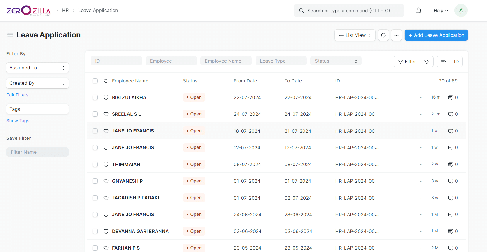 - Leave Application: Enables employees to apply for leave, check leave status, and manage leave balances.
